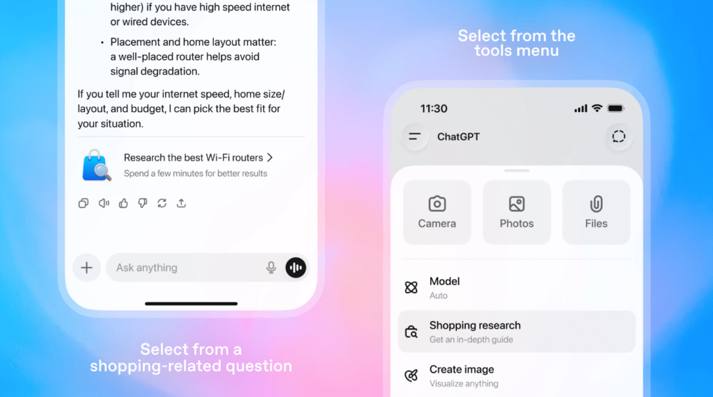 ChatGPT 쇼핑 연구 추가: 새로운 제품 발견 기능